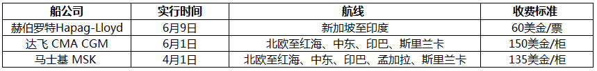 这是近期宣布收取退舱费的船公司、收费标准和航线列表: