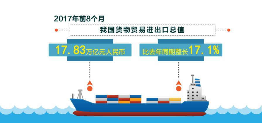 据海关统计,今年前8个月,我国货物贸易进出口总值17.83万亿元人民币,比去年同期(下同)增长17.1%。其中,出口9.85万亿元,增长13%;进口7.98万亿元,增长22.5%;贸易顺差1.87万亿元,收窄15.1%。