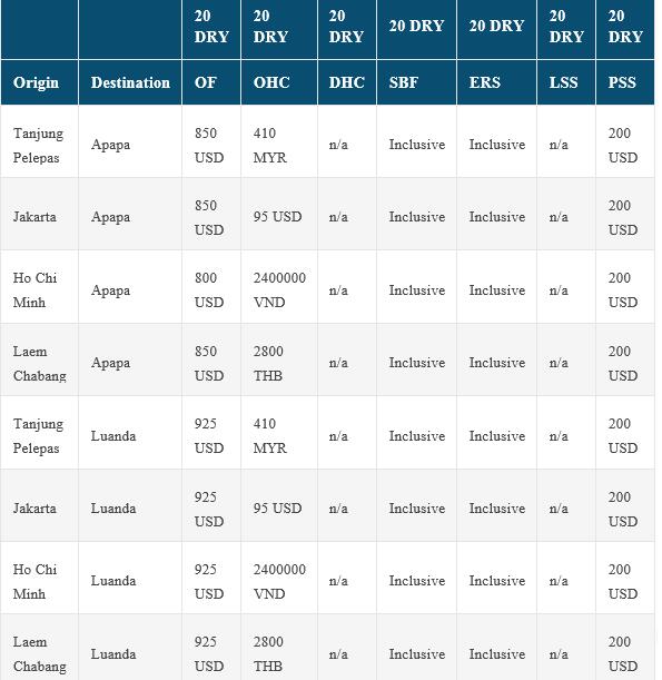 马士基航运宣布2018年4月27日至30日调整东南亚至西非航线(不包括毛里塔尼亚、马里、塞内加尔、冈比亚、几内亚、几内亚比绍和佛得角)旺季附加费(PSS)
