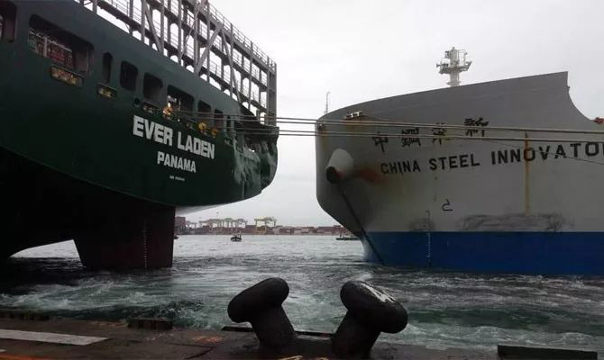 据行业人士刚刚获悉,长荣海运旗下一艘船名为 Ever Laden,运力高达8452Teu的大型集装箱船,于今天(6月19日)上午约9点40分在停靠在台湾高雄码头作业时,被中钢运通20.7万吨中钢矿砂船“中钢求新”轮碰撞,事故导致长荣Ever Laden轮尾部凹陷!