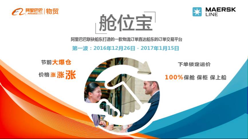 年关将至,阿里巴巴物贸联袂马士基航运,突破传统订舱规则,针对中小企业在年底旺季中最迫切的需求,推出物流订单直达船公司的订单交易平台产品——舱位宝。